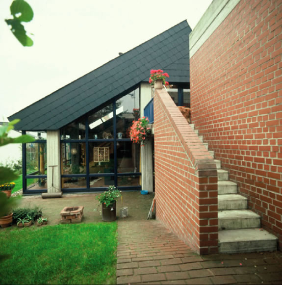 Das Endhaus einer Wohnhausgruppe (mein eigenes) brachte alle Möglichkeiten der Auflösung nach Sonne und Licht.